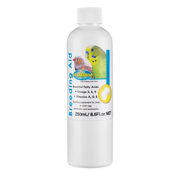 Vetafarm Breeding Aid is an oil-based breeding supplement, fortified with stabilised vitamins for addition to seed diets.