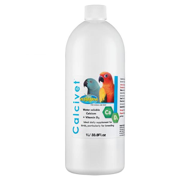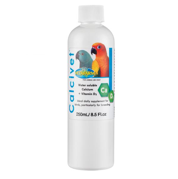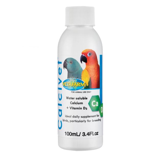 Vetafarm Calcivet is a liquid calcium and vitamin D3 supplement for addition to water, soft foods or for direct administration in times of emergency for birds.